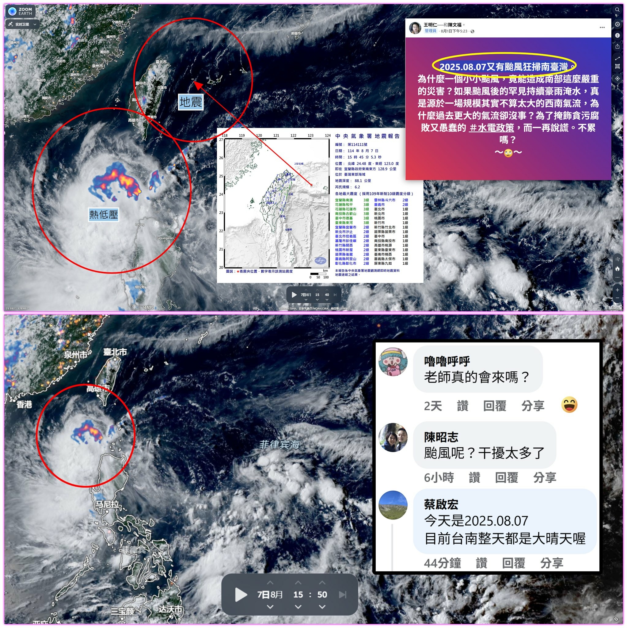 2025年8月7日 預期將引發颱風、襲擊南臺灣的強能量,分別以規模6.2地震與熱低壓的型態「分批釋放」。